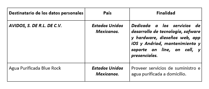 ✔ Uso de información privada para la prestación de servicios que realizamos a usted o su representada.